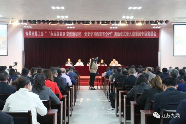如皋市總工會(huì)“‘永遠(yuǎn)跟黨走 奮進(jìn)新征程’黨史學(xué)習(xí)教育百企行”啟動(dòng)儀式暨首場宣講會(huì)在九鼎集團(tuán)舉行儀式暨首場宣講會(huì)在九鼎召開