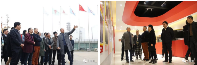 考察團首先參觀了九鼎新材葉片車間,實地考察了企業(yè)的生產(chǎn)經(jīng)營狀況;隨后參觀了“鼎”字雕塑以及九鼎新材產(chǎn)品展廳。董事長顧清波向考察團介紹了企業(yè)的整體概況、主營業(yè)務(wù)、主要產(chǎn)品等,隨后向考察團闡述了“鼎”的來源等企業(yè)文化發(fā)展沿革和文化精神體系。
