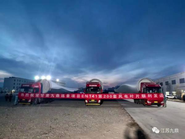12月9日,甘肅九鼎遠景項目第200套EN141風電葉片完成裝車,成功發(fā)往陜西榆林。